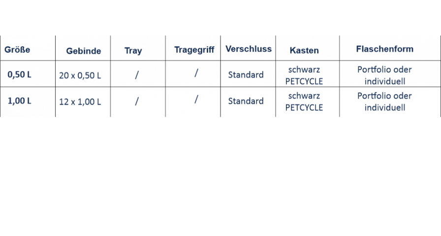 Wir haben die Möglichkeit, 0 – 100 % rePET Material für Ihre Flaschen zu verwenden.